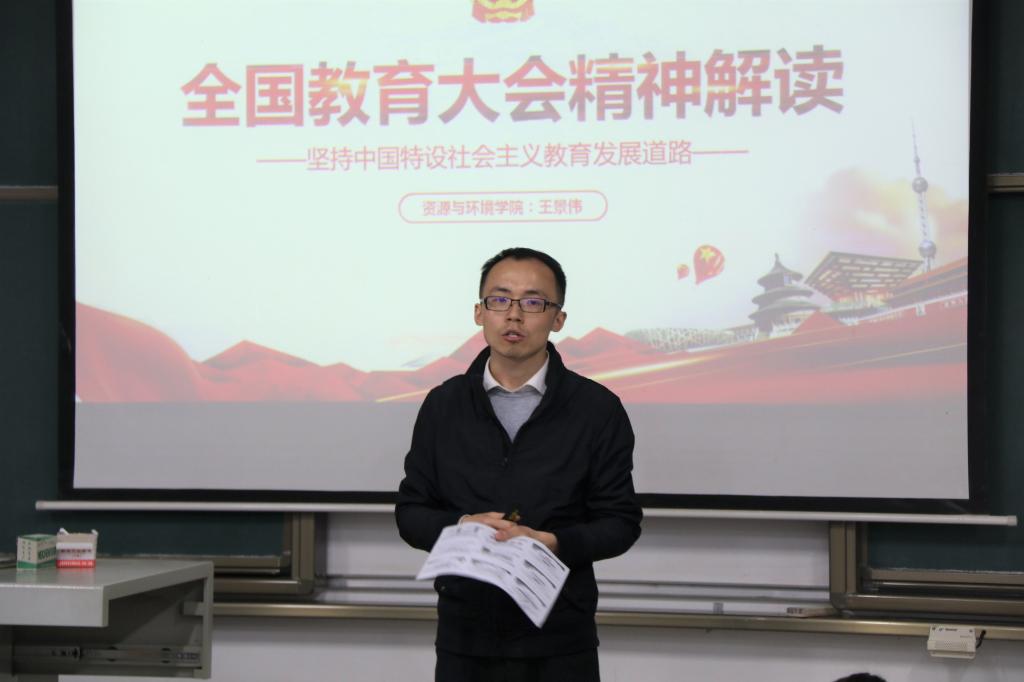 3月31日晚,公司在第四教学楼A座一楼举行以“学习全国教育大会和团的十八大精神”为主题的第四期团课。本科生党支部书记王景伟、艾力·斯迪克、储召杰、许泽远、王阳阳,部分本科生党员以及2018级全体员工参加此次课程。