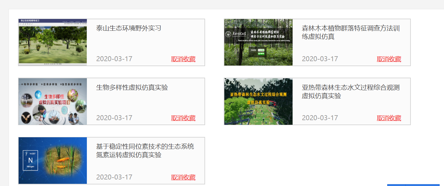 充分利用虚拟仿真实验平台,选择合适的实验项目(见下图,已收藏可选的项目,待分别通过教师实践,再行选择并推荐给员工),并由教师预先完成一轮实验。指导员工注册登录进入实验,按要求完成实验内容,课后巩固以及实验报告,并掌握相应实验的目的、原理、方法。