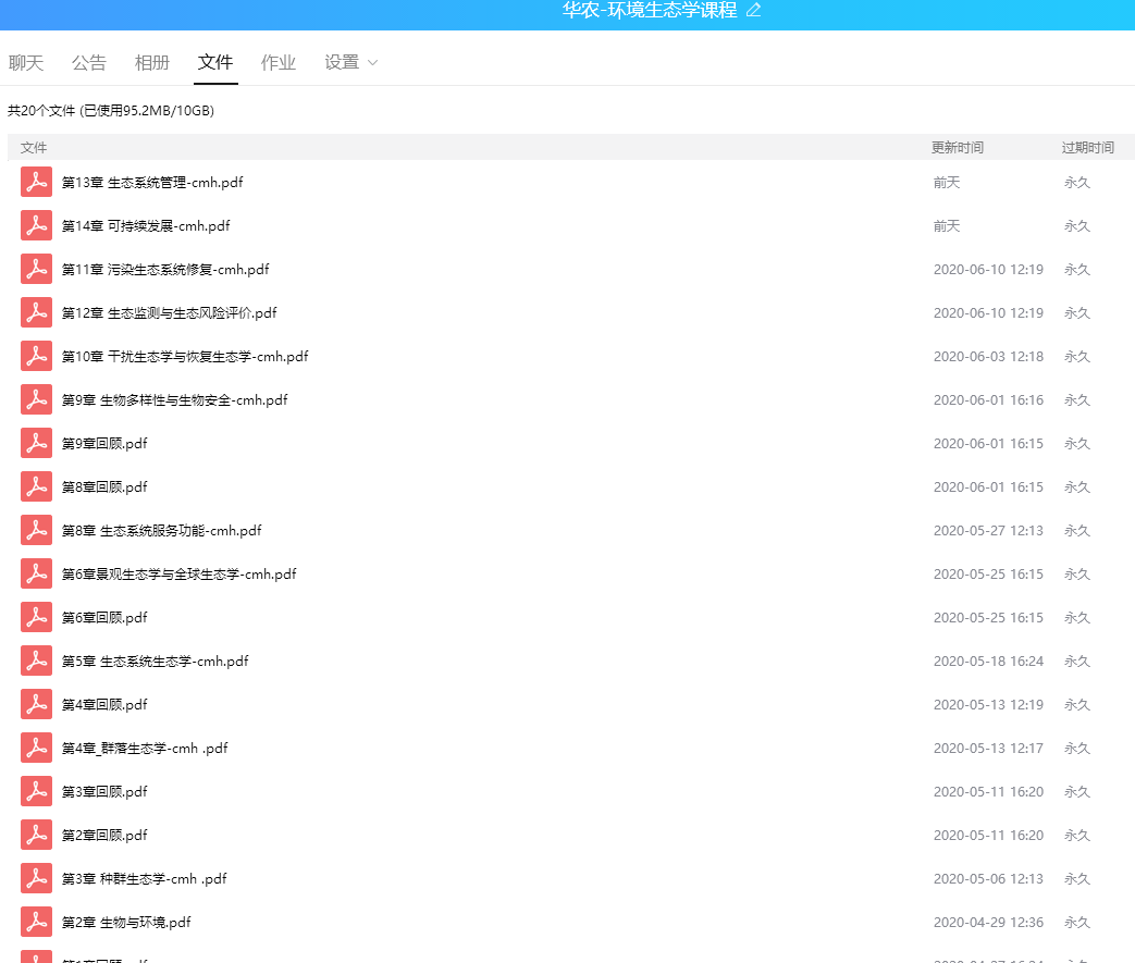 (3)平台选择。课程教学环节采用QQ平台,新建了环境生态学课程学习QQ群,通过QQ群分屏开展在线教学。在群内共享《环境生态学》课程的电子课件和相关资料,使员工在没有教材的情况下也能及时预习和复习课程内容。同时在QQ群中及时收集和反馈同学提出的问题。员工展示环节采用腾讯会议,员工选择环境生态学中感兴趣的主题,然后收集相关的资料制作成PPT,大家在腾讯会议上展示和互动比较方便。
