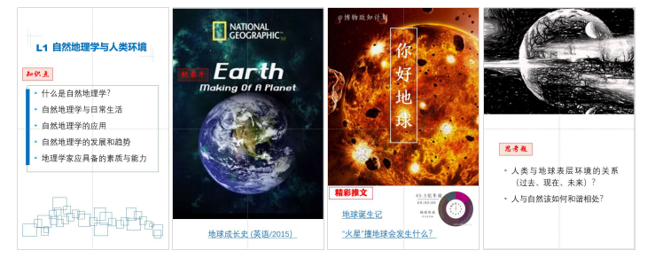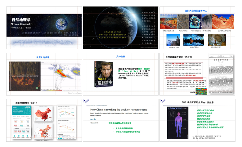 如何让员工“足不出户,便知天下”?通过搜索引擎、文献、著作、公众号等途径收集自然地理学相关的信息(静图、动图、动画、视频、影片、......),然后筛选,分别融合到20次课堂的教学专题当中。