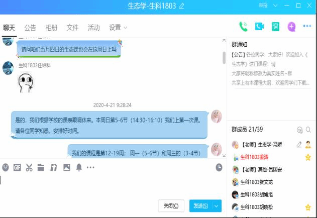 新建课程学习QQ群,按照公司《关于组织好2020年春季学期在线教学等工作的通知》要求,利用QQ群语音+屏幕共享以及腾讯课堂等平台,积极开展在线教学。