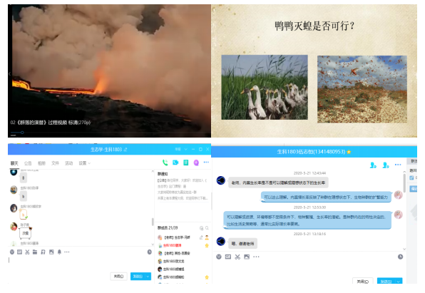 二、优化课堂设计。主要表现在:1.课前提问,请同学对上节课的内容进行回顾,督促员工课后复习;2.加入视频辅助教学,对于自然界中存在的有趣的现象找到生动的视频,请员工利用生态学知识理论解释自然现象,有助于激发员工思考,提高对知识的运用;3.课堂中设计小的思考题,加强与员工互动;4.将时事融入到生态学的课程中,如在讲到种群爆发时,加入运用生态学理论解释“东非蝗灾”的起源及生态治理对策;在讲到种群数量动态时,加入“新冠肺炎”病毒的发生与扩散模型。5.根据云课堂特点随时对员工提出的问题进行答疑。