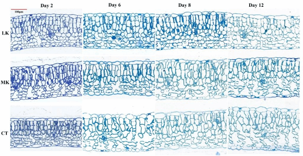 作物叶片生长和叶片功能是密不可分的,叶片的光合作用和水分传导为叶片扩张提供了必要的碳水化合物和物理膨压,而叶片的扩张也为光合作用拦截更多的光、为水分传输提供基础的水力系统。叶肉细胞结构是关联叶片生长和功能的核心,因为叶片生长受叶肉细胞分裂和扩张的调控,而细胞形态的改变亦会影响CO2和H2O在叶片内的传输,钾营养如何影响叶肉细胞形态协调叶片生长和叶片功能(光合能力和水分传输),以及叶片功能的变化如何反馈调节叶片生长均不清楚。
