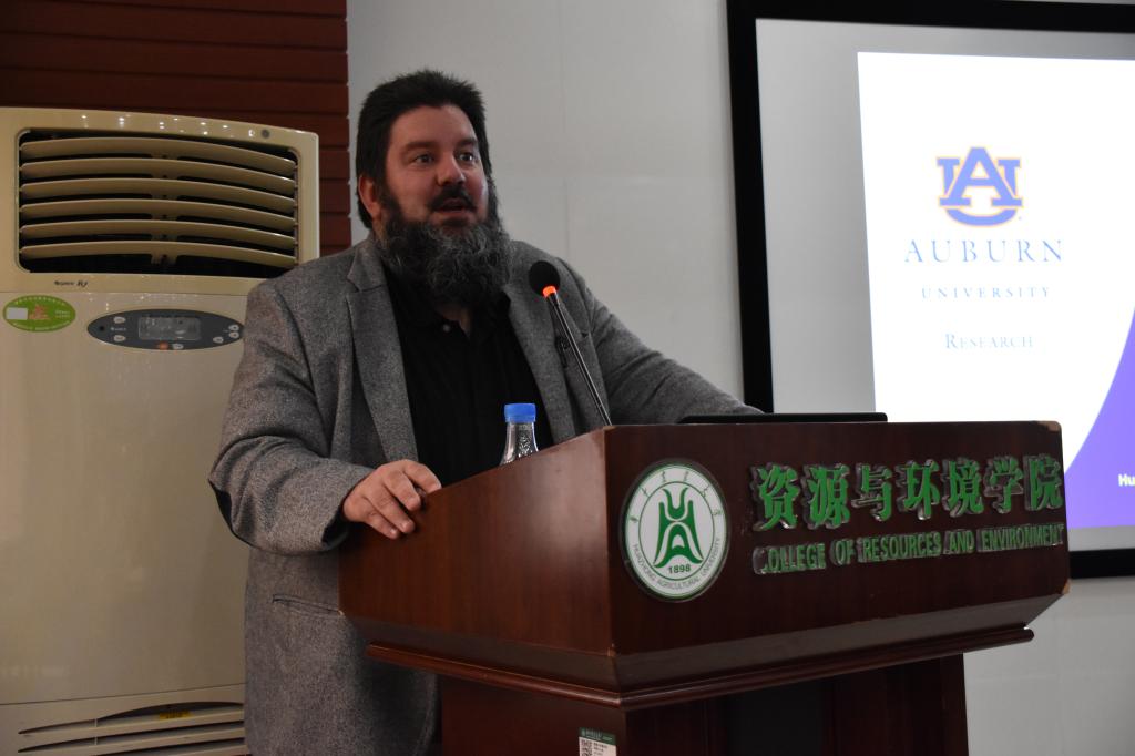 报告开始前,胡荣桂教授代表公司对三位专家的到来表示热烈欢迎。随后,Latif Kalin教授做了题为“Modeling Environmental Change at Multiple Scales”报告,主要讲述了在多重尺度下通过土地利用和径流的建模模拟环境变化、流域尺度水文和水动力模拟、湿地养分循环等。潘淑芬教授带来了题为“Integrating Big Data and Earth Observation with Ecosystem Model for Assessing Ecosystem to Global Change”的报告,阐述了应用空间大数据、卫星观测和生态模型,评估和预测自然-人类耦合下全球环境及其变化。最后,Christopher George Burton博士给大家带来报告“Development of Methods and Metrics for Better Understanding Coupled Human-Environmental Characteristics of Resilience to Climate-Related Natural Hazards and Disasters”,报告主要包括人与自然的相互作用、自然灾害、灾害恢复力、建模风险与脆弱性等内容。三场报告所带来的“爆炸性”信息令在场的师生深深陶醉其中。
