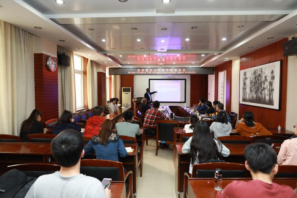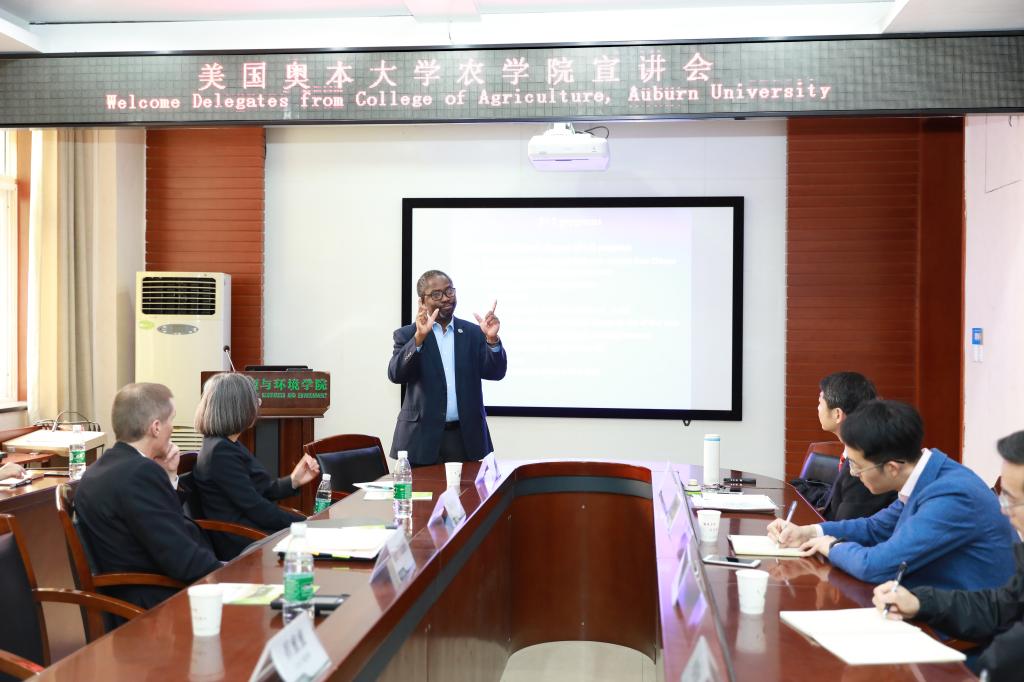 会议开始前,黄巧云经理代表公司对奥本大学农公司一行来访公司表示热烈欢迎。随后,奥本大学农公司副经理Henry Fadamiro从公司历史、校园文化、学科发展以及与国内高校合作等方面系统的介绍了奥本大学。作物土壤和环境科学系冯宇澄教授详细介绍了土壤与环境科学学科发展概况、“联合3+1“项目、申请就读奥本大学具体要求等。