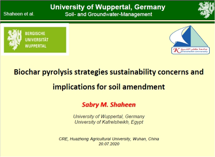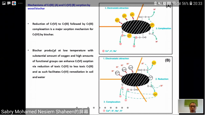 7月21日晚,德国Wuppertal大学研究员Sabry M. Shaheen与公司师生进行云端学术交流,进行了题为“生物炭热解策略的可持续性问题及其在土壤改良中的应用”的报告,报告会由公司胡红青教授主持,参会师生共39人。