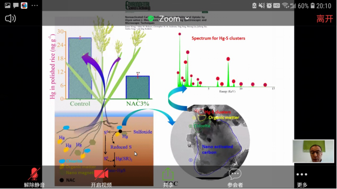 报告伊始,Shaheen从废物处置的全球性问题介绍了生物炭在农业领域的可持续利用前景。随后,通过展示其团队在Journal of Hazardous Materials 等期刊上发表的优秀成果,Shaheen系统地介绍了生物炭的制备方法和在农业环境中的应用,探讨了生物炭对矿区重金属污染土壤的修复效果和氧化还原条件下生物炭与铅、镉之间的相互作用以及固定重金属的机制。
