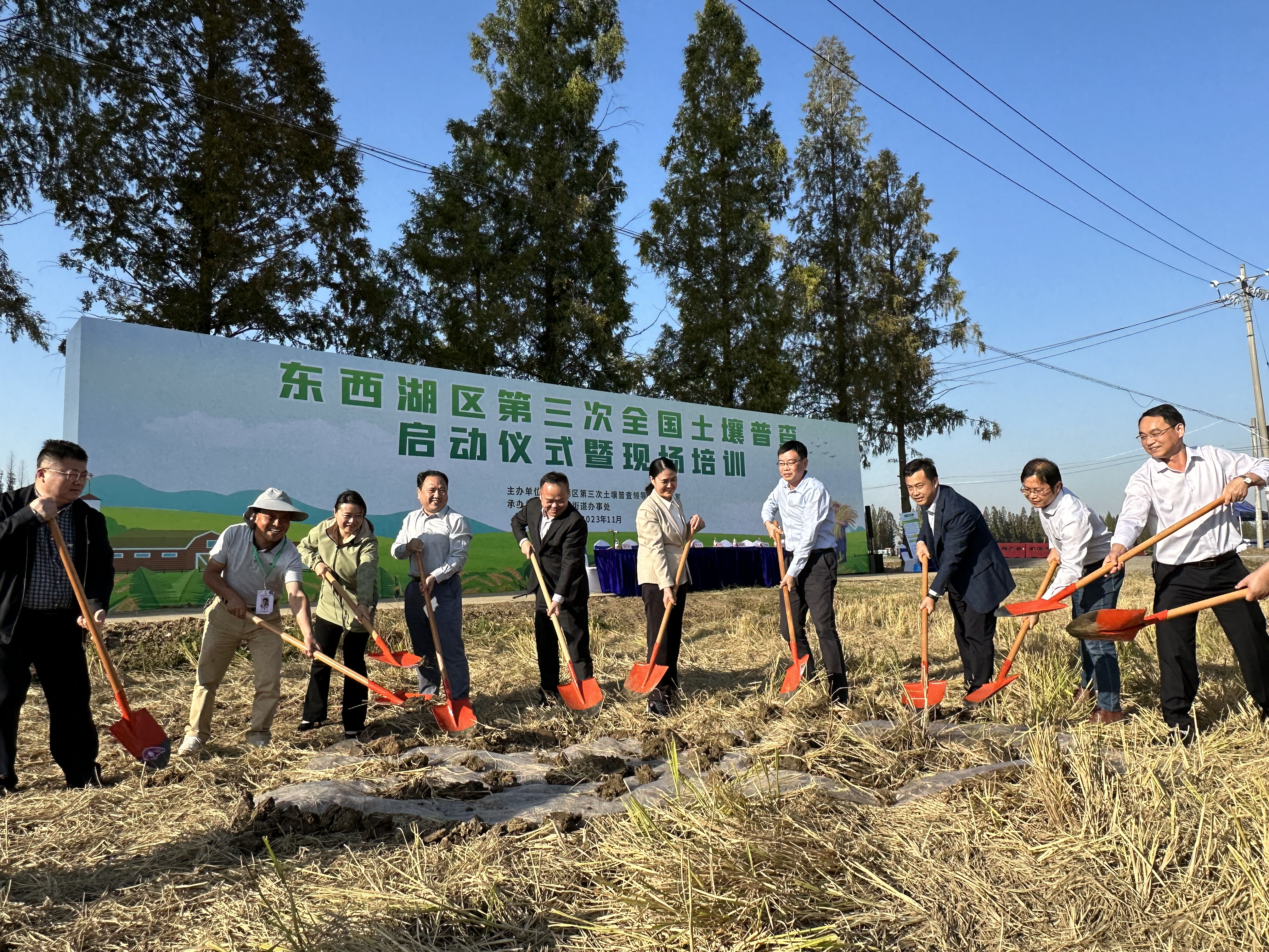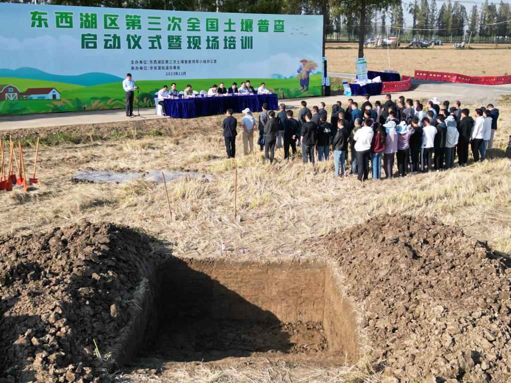 (通讯员 吴刚 )11月7日下午,由东西湖区第三次全国土壤普查领导小组办公室主办,辛安渡街道办事处承办的东西湖区第三次全国土壤普查启动仪式暨现场培训在辛安渡举行。湖北省三普办专职副主任柯建国、公司党委常委、副董事长郭刚奇、武汉市农业农村局党组书记、局长王玉珍以及湖北省三普办外业专家组组长王天巍、武鄂片区负责人陈家赢等出席启动仪式。会议由东西湖区农业农村局党组书记、局长高忠主持,外业采样人员、东西湖区农业农村局三普工作技术人员及区街两级一线质控人员等参与此次启动推进仪式及培训。