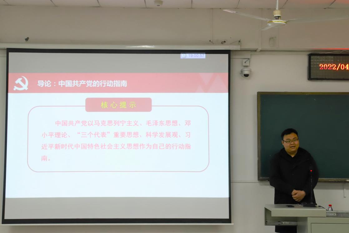 在本次党课中,谭力铭老师以《中国共产党的指导思想》为主题,首先先从苏联解体这一历史事件出发,从各个角度剖析了苏联解体的原因,给出了自己对于党内建设的观点。之后在谈到马克思主义诞生的时候,谭力铭老师指出:“马克思主义是我们党的灵魂和旗帜。”在引入马克思主义中国化的过程中,谭力铭老师带领大家梳理了中国自改革开放以来包括毛泽东思想、邓小平理论、“三个代表”重要思想、科学发展观及习近平新时代中国特色社会主义思想在内的一系列马克思主义中国化的理论研究成果,让同学们对这些理论有了更深层次的认识。
