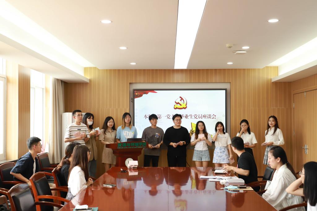 会上,党支部全体共同重温誓词,共同学习了习近平总书记在中共中央政治局第三十九次集体学习时的讲话、习近平总书记给南京大学归国留学青年学者的回信、习近平总书记致2022年六五环境日国家主场活动的贺信,并开展了党支部2022届毕业生党员座谈会。