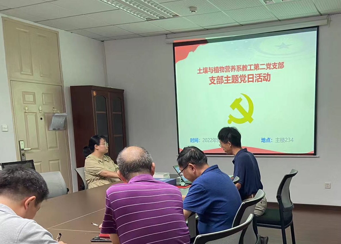 9月13日下午,土壤与植物营养系教工第二党支部在主楼234会议室开展主题党日活动。支部全体党员和土壤与植物营养系老师参加活动。