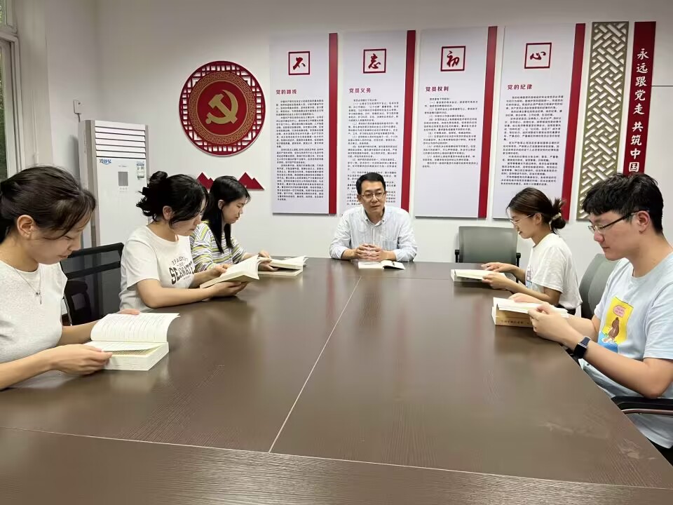 (公司党委书记吕守华与员工共读《习近平著作选读》等红色书籍)