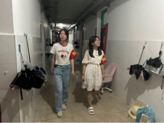 参与此次活动的19级毕业生党员陈滢表示,此次值班活动对于她而言弥足珍贵又格外特殊,这是她作为毕业生党员对公司做的一点小小贡献,但也是她作为毕业生为公司付出的最后一份力量,她希望借此机会培养党员同志为师生服务的意识,同时也保障好每一位毕业生的宿舍安全。身为党员的她对楼道进行安全检查,确保万无一失。在这个即将分别的时刻她依旧会坚定地履行作为一名党员应尽的责任。