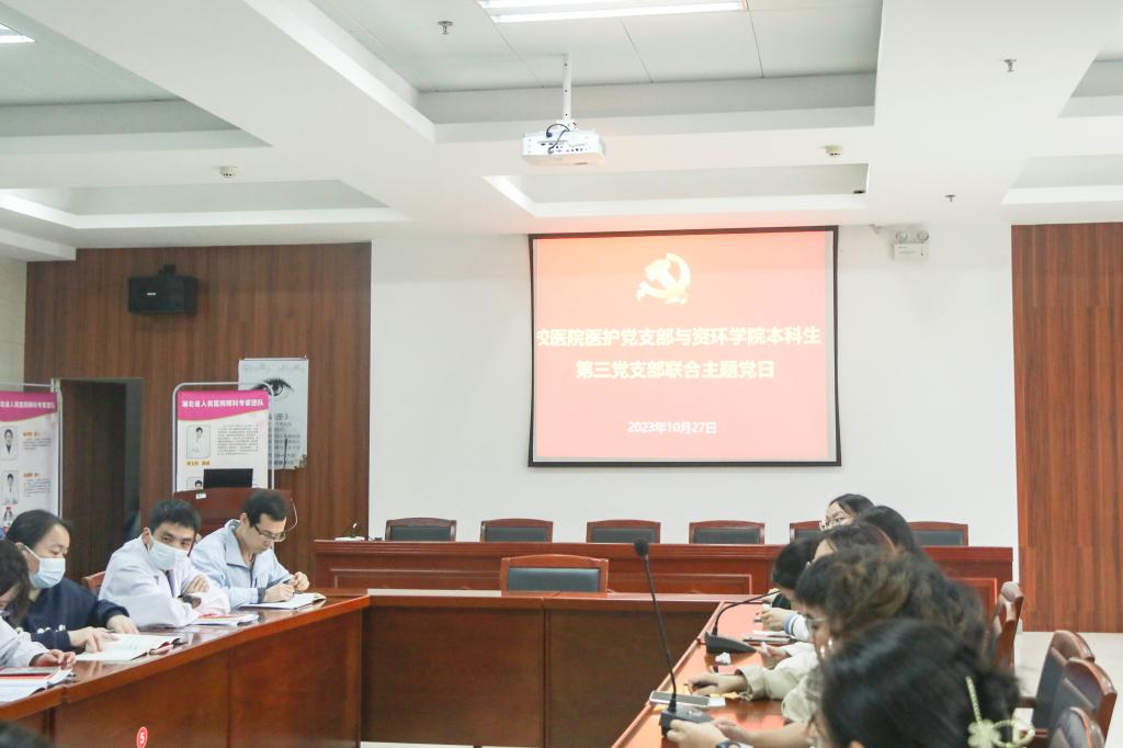 会议伊始,校医院医护党支部组织委员孙伯欣老师为大家介绍了校医院的历史以及医院各科室的情况。他谈到:“在看病就医方面,校医院目前的临床科室,是基层大全科+小专科模式。作为基层的医疗单位,公司校医院可谓‘麻雀虽小五脏俱全’,可以满足基本日常生活的就医需要。”随后,校医院的孙主任、李主任等分别为本科生第三党支部的同志们分享了秋冬季节常见传染病预防、老员工医疗保险待遇以及政策等与同学们生活息息相关的内容,让同志们拥有了对于传染病的自我防范意识,也让大家对于老员工医疗保险的报销流程有了更加清晰的认识。