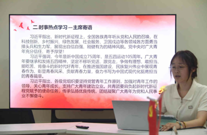 五四青年节之际,习总书记向全国广大青年致以节日祝贺和诚挚问候。习总书记在给中国青年的寄语中说道,新时代新征程上,全国各族青年听从党和人民的召唤,在科技创新、乡村振兴、绿色发展、社会服务、卫国戍边等各领域各方面勇当排头兵和生力军,展现出自信自强、刚健有为的精神风貌。党中央对广大青年充分信任、寄予厚望!在学习主席寄语的过程中同学们分享了自己所理解的五四精神,并对如何践行五四精神发表了自己的看法。
