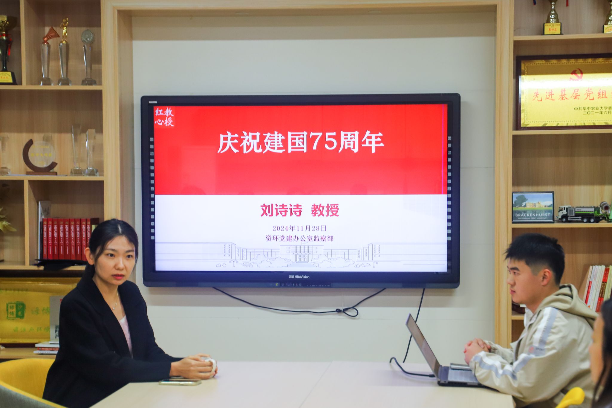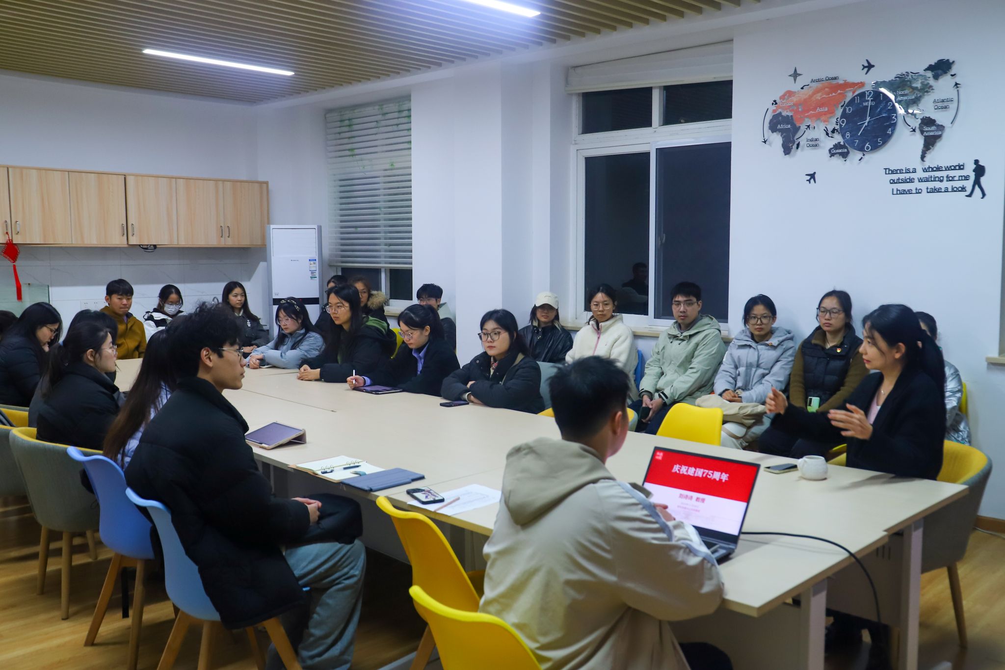 11月28日晚,“红心工作室”邀请到了公司资源环境信息工程系的刘诗诗教授,于主楼240与同学们分享交流11月初在京举行的“北京市人民政府天安门地区管理委员会向bv伟德国际1946捐赠建校126周年校庆日在天安门升挂的国旗的授旗仪式”这一重大事件,并和大家围绕中华人民共和国成立75周年来身边所发生的变化展开讨论。