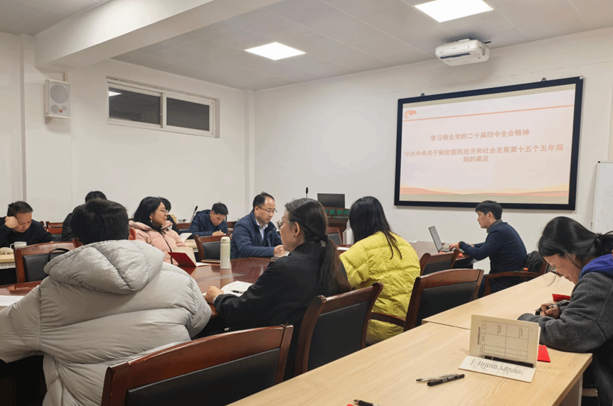 支部党员邢永辉、戴珂分别领学了《中共中央关于制定国民经济和社会发展第十五个五年规划的建议》及其说明文件。他们表示,“十五五”时期是我国全面建设社会主义现代化国家新征程的关键五年,《建议》擘画了未来五年经济和社会发展的宏伟蓝图,是指导各项工作的行动纲领。作为高校教师,要深刻认识《建议》的精神实质和重大意义,自觉将思想和行动统一到党中央的决策部署上来。