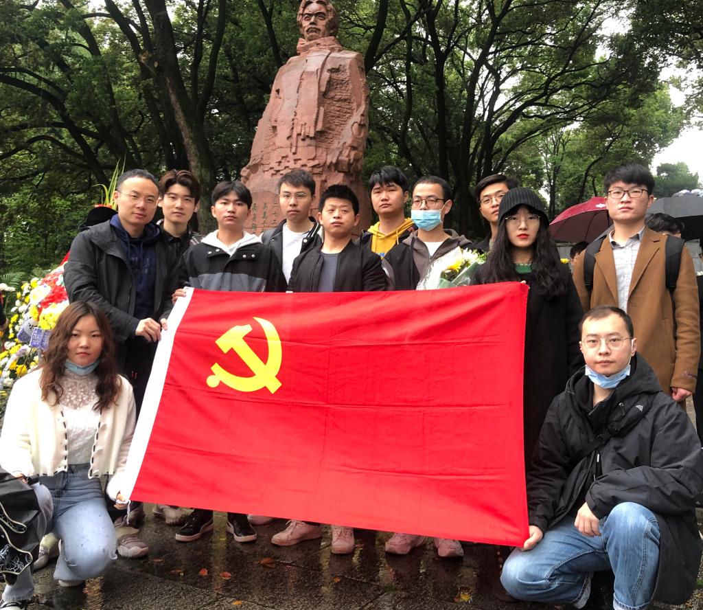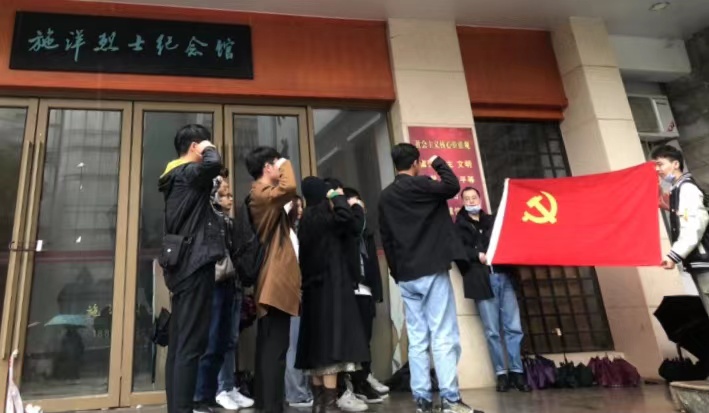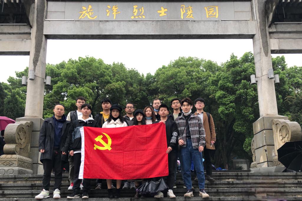 祭扫现场,支部书记陈京平深情讲述施洋烈士英雄事迹,胡一凡与吴奇元两名支部党员代表带领全体支部成员向烈士肃立默哀并敬献鲜花,深切表达对先烈的缅怀之情。随后,支部成员在施洋烈士纪念馆前面对党旗重温入党誓词,以表继承先烈遗志,发扬革命传统之意。