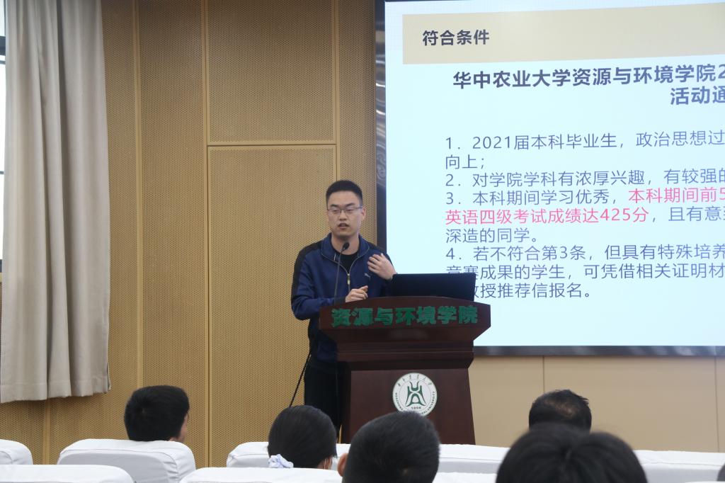 首先进行分享的是保研至中国农业大学的韩峥和保研至武汉大学的谢天。韩峥主要针对不同年级的学弟学妹给予了相应阶段的建议,在基本介绍了保研条件之后,韩峥提醒2018级的同学现在可以准备保研的资料;2019级和2020级的同学则是需要增加知识储备,积极参加竞赛,重视英语学习,抓紧时间备考四六级。谢天是通过分享自己的保研过程直观地展示了自己的保研之路。从前期准备工作,参加夏令营,到九月推免、登入系统确认,谢天详细地介绍完整个流程,并且强调学习和科研的重要性。