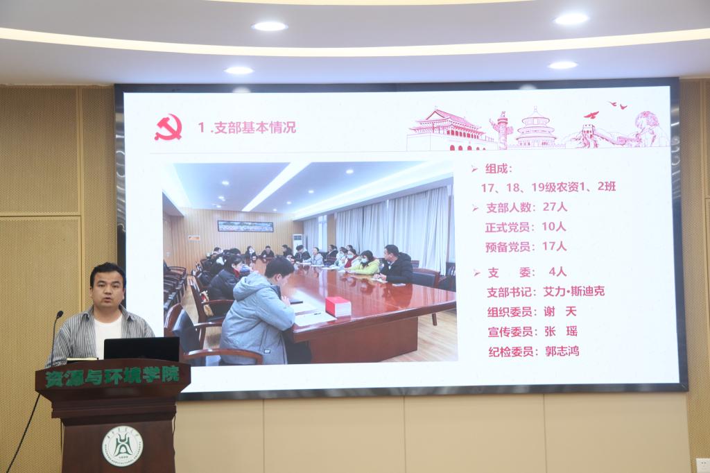 最后党支部书记艾力·斯迪克向同学介绍了党支部组成、组织生活会、支部立项与特色活动、毕业生党员去向等情况。鼓励同学们尽早提交入党申请书,继续加强党性修养和理论学习,在思想上积极入党。相信在优秀毕业生党员的引导下,同学们都能做好未来规划,坚定信念,树立远大理想。