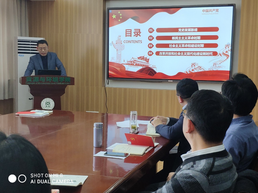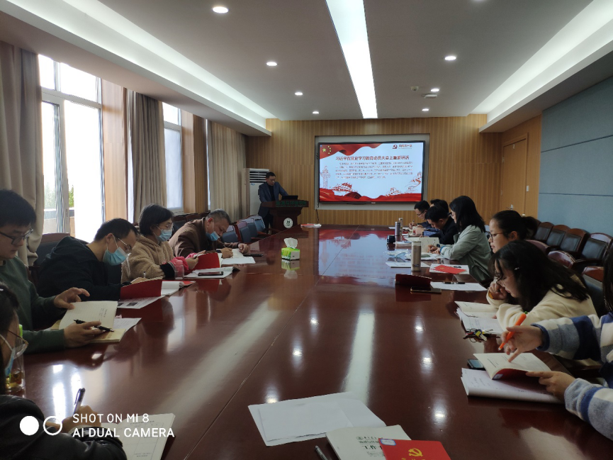 陶艳红同志以“党史学习”为主题进行了学习交流,围绕着党史发展脉络及学习意义、新民主主义革命时期、社会主义革命和建设时期、改革开放和社会主义现代化建设新时代四个方面进行发言。他谈到,我们应该加强党史学习,增强工作责任感;加强业务学习,提高业务能力。他结合自己的日常工作提出了“我为师生办事”的举措:加强信息化建设和管理服务水平,让师生们少跑路,切实解决青年老师的困难;创先进争优秀,创新工作方法,熟悉工作并且主动研究工作;要提升工作颜值,打造工作品牌,加大宣传工作。