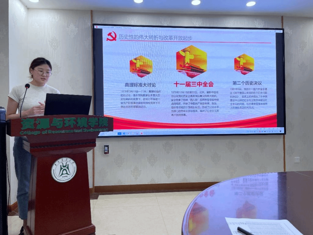 支部入党积极分子孙瑞同志以“不忘初心,继续前行”为主题,以时间为主线,从历史性的伟大转折与改革开放起步、改革开放和现代化建设新局面的展开、改革开放和现代化建设发展的新阶段、改革开放和社会主义现代化建设的成就四个部分带领全体同志学习了改革开放与社会主义现代化建设新时期的党史。她分享到:“中国特色社会主义道路是实现中华民族的中国梦的必由之路;必须毫不动摇地坚持党的集中统一领导;坚持和积极推动科学发展、高质量发展;更高举起改革开放的旗帜;坚定道路自信,增强道路定力;勇于理论创新,始终与时俱进!”。最后,她向大家推荐了两部优秀纪录片《中国改革开放的故事》、《我们一起走过》。