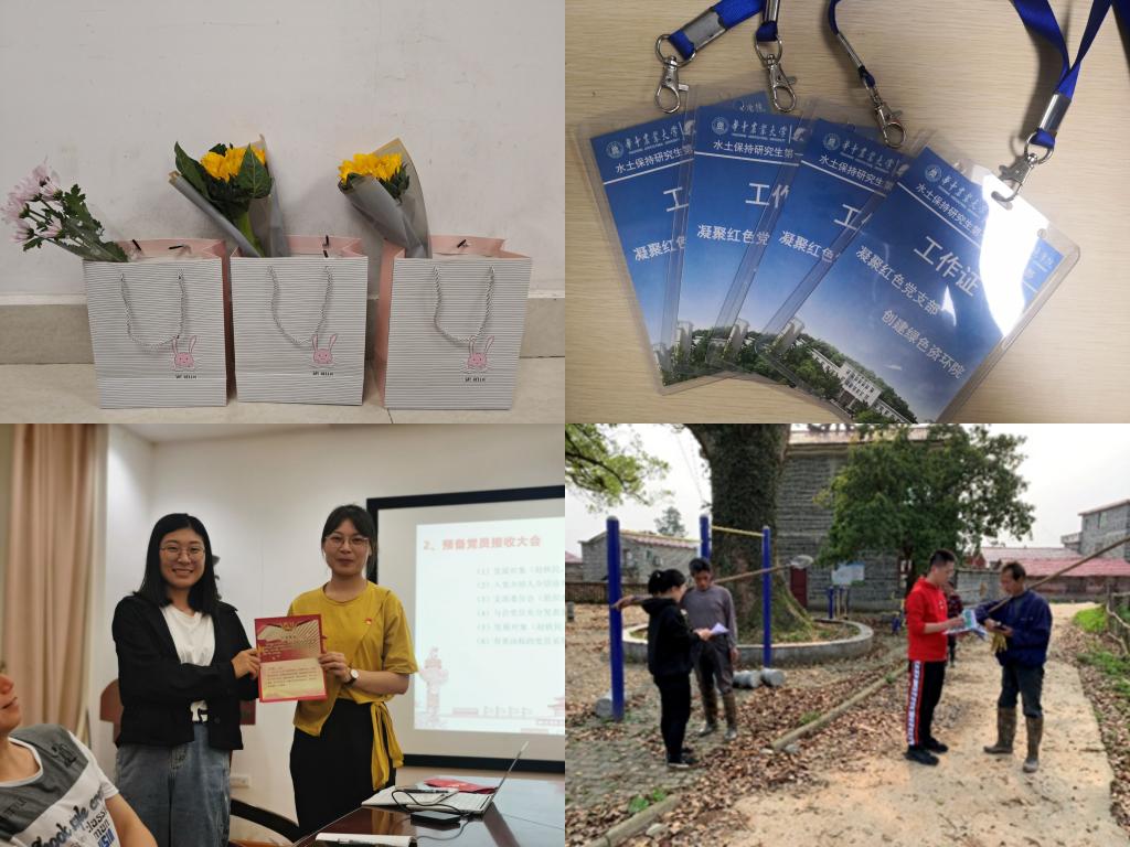 支部积极响应国家“绿水青山就是金山银山,促进生态环境的可持续发展”号召,推出“绿色发展、水保先行”立项活动,支部党员利用出差的时间,在完成科研任务的同时分别前往江西吉安县千烟洲、湖北丹江口和恩施长堰等地方,通过支部制作的“水土保持宣传手册”向当地居民开展水土保持知识科普,并针对当地实际情况进行总结与探讨交流,为保护我国水土资源增砖添瓦。