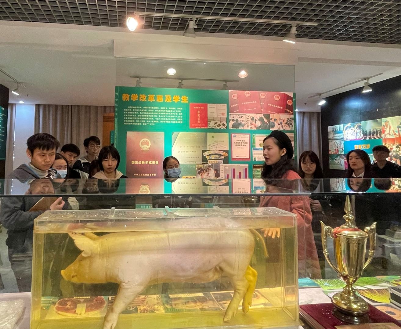 会后,与会人员一同步行前往校史馆参观。在校史馆讲解员的带领下,以馆前的“凡民俊秀皆入学,天下大利必归农”开始,从精美的校园沙盘领略风景如画的校园风光,透过历史的书卷和泛黄的照片回顾公司百余年来的变迁与发展,一步一挪间,走过公司百年的记忆。通过“一枝花、一株稻、一头猪、一支苗、一棵树、一粒豆”仿佛看到公司未来发展更加蓬勃向上!在看到墙上四位院士及诸位教授的照片时,不禁感叹他们所取得的重大成就,丁老师笑称到:“大家之后的目标就是要‘上墙’!”。