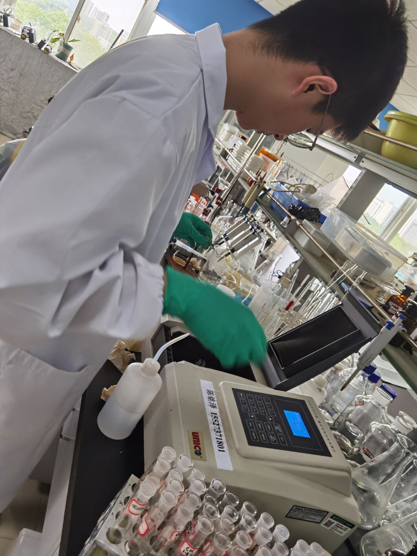7月8日上午九点,小组成员在bv伟德国际1946桃园食堂门前集合,一同前往生猪健康养殖协同创新中心实验室对前几日在东湖不同水域所采水样进行氨氮和磷的含量以及水质COD(化学需氧量),主要目的在于根据上述综合数据反映出东湖水体的有机物污染程度。经过一天的测定,东湖各水域水质对比情况已初见雏形,实验数据将经过进一步的处理比较得出最终结果。同日,小组成员根据几天的实际情况,对线上调研问卷进行了微调,完成后已经正式发布并开始了数据整理与收集。
