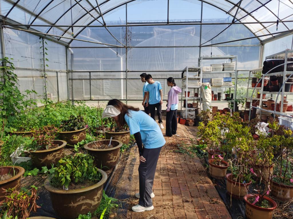与此同时,实践团成员还前往园林院花卉基地,对基地内植物和花卉进行认识和学习。美人蕉、迷迭香、大金鸡菊、杜鹃……实践团成员结合神农架林区与校内花卉品种,对花卉与植物进行辨别,为前往神农架林区实地调研做好准备。
