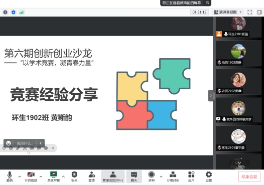 地信2201班的葛雪晴参与了本次沙龙后谈到:“本期沙龙围绕竞赛经验分享邀请了三位优秀的学长学姐分享经验,嘉宾们介绍了自己的科研竞赛经历、相关经验、答辩时的建议和小技巧以及解答观众疑问等方面展开介绍,对于老员工来说,科研和竞赛是丰富我们履历和提高知识水平的一段经历,听了本次沙龙之后,自己也更有信心和意愿去参与学术竞赛!”