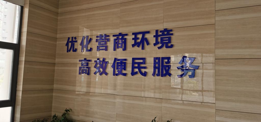 招商服务中心的门口瓷砖墙贴着毛主席的“为人民服务”。招商服务中心的负责人潘主任向张小蕊同学介绍:“我们的工作理念是优化营商环境,高效便民服务。为人民服务一直是我们的追求和初心,我们要不忘初心,有始有终。”