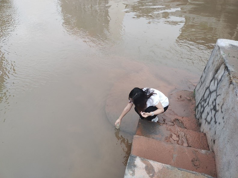 (团队成员周翊在长江流域实地取水)