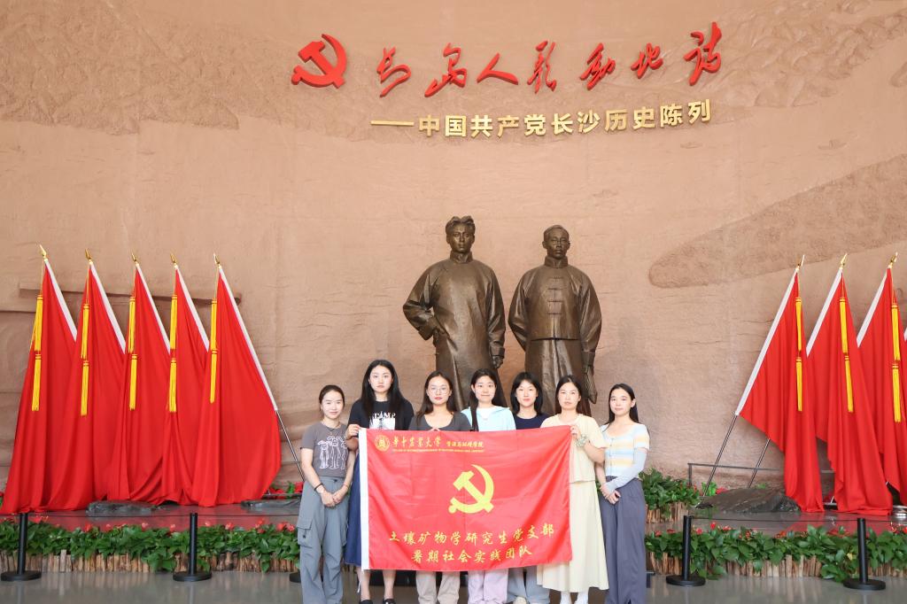 (通讯员:付一晟、秦尚彬、李博涵)7月19日至21日,公司土壤矿物学研究生党支部暑期社会实践团队队长尹慧琳携十名队员前往湖南省长沙市、韶山市,在韶山毛主席故居、湖南第一师范公司、岳麓书院、新民学会成立会旧址、中国共产党长沙历史馆等红色旧址开展“长沙韶山迹永存,红色精神代代传”实践调研活动,旨在深刻领悟红色精神的内涵和价值,激发新一代青年的爱国热情和奋斗精神,使红色精神在新时代得到创造性的传承和发展。