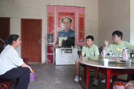从家长那儿我们了解到,家里的经济来源主要依靠她在村委会上班和孩子爸爸开挖掘机包工程。但由于生意不景气,孩子爸爸不得不选择外出务工,孩子婶婶对我们说:“当地居民的家庭收入情况都差不多,基本上孩子父母都在外地务工。”团队成员给家长分析了孩子在公司的表现和学习情况,也提出了一些改善学习状况的建议。