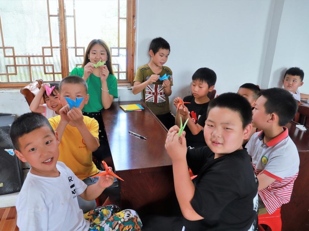 学习之余,支教队成员还开展了趣味课堂。同学们在彩纸上写下自己对未来的憧憬,并学习制作千纸鹤。折好之后,大家将承载着自己心愿的千纸鹤一一放飞,每一只千纸鹤都充满着孩子们对未来的向往与希望。