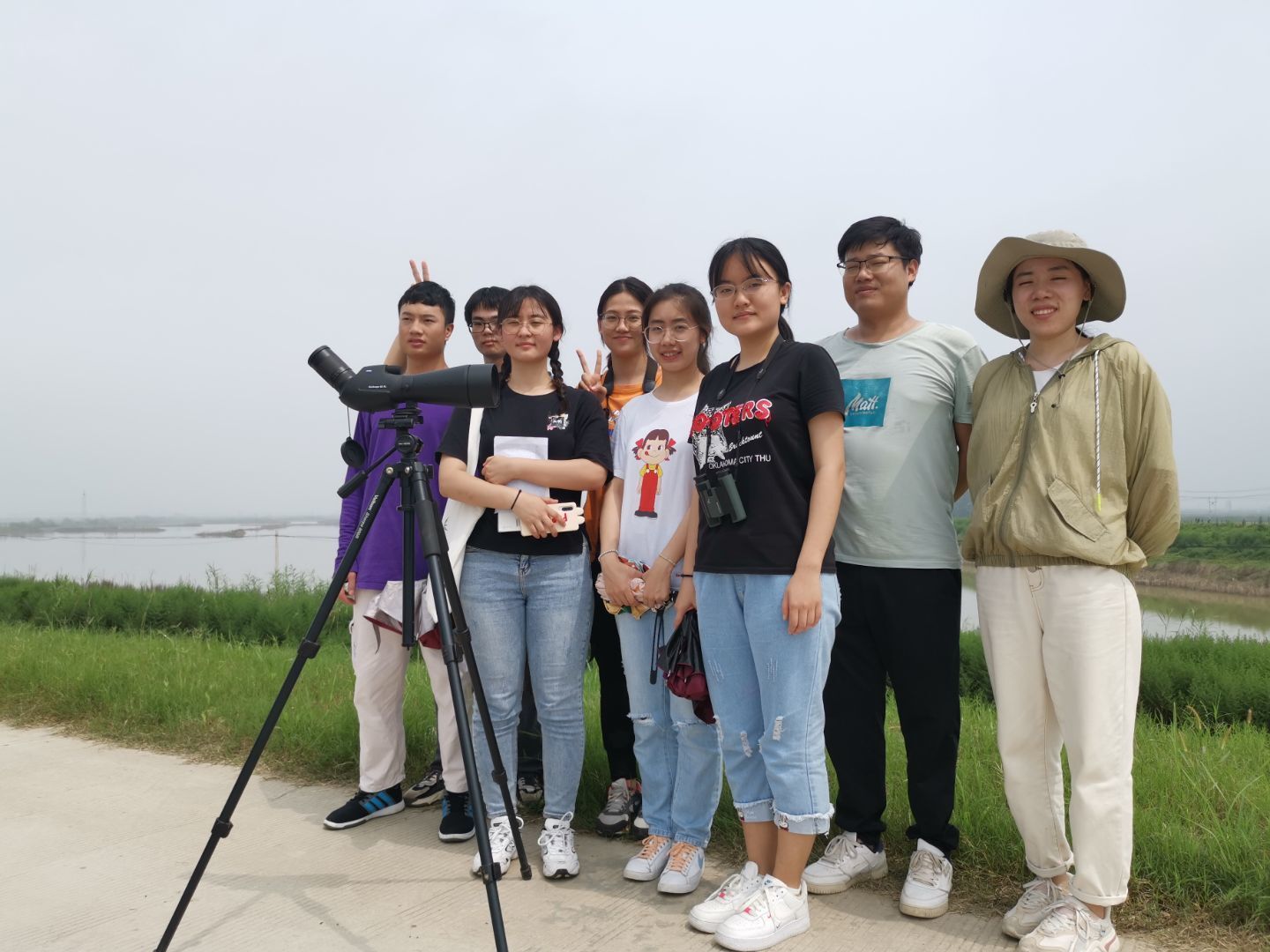 首先开展的是实地调查部分。7月6日,在沉湖湿地自然保护区工作人员的带领下,实践团一行10人前往沉湖湿地自然保护区实地观察了在此栖息的各种鸟类的生活情况。上午,实践团沿着大堤先前往了王家涉湖,成员们在这里观察到了白鹭、鸬鹚、黑枕黄鹂等鸟类。据介绍,武汉地理位置非常优越,位于全球候鸟迁徙路线的周边,而武汉沉湖湿地总面积17.4万亩,其中核心区8.8万亩、缓冲区1.9万亩、实验区6.7万亩;核心区内有广阔的沼泽、湖滩、草甸和丰富的生物资源,生态系统完整,是江汉平原最大的淡水湖泊沼泽湿地。虽然本次实践活动主要观察到的是夏候鸟,但沉湖湿地主要栖息的是冬候鸟,一到冬天,湖泊水位变低,湖泊中的滩涂、水草显露出来,吸引众多候鸟来此觅食越冬。除了冬候鸟外,这里还栖息着一定数量的夏候鸟和鸭子,有的候鸟夏天来到此地便在此安家、繁育下一代。下午,实践团前往沉湖湿地另外一个重要组成部分——张家大湖,这片水域主要栖息着绿头鸭、短嘴豆雁、翠鸟、灰翅浮鸥等种群。成员们利用专业的观鸟望远镜观察到了其乐融融的灰翅浮鸥一家,为了保护鸟蛋,鸟妈妈一直在实践团成员头上盘旋,说明鸟类对于人类还是抱有高度警惕心的,人类与鸟类需要保持友好距离。