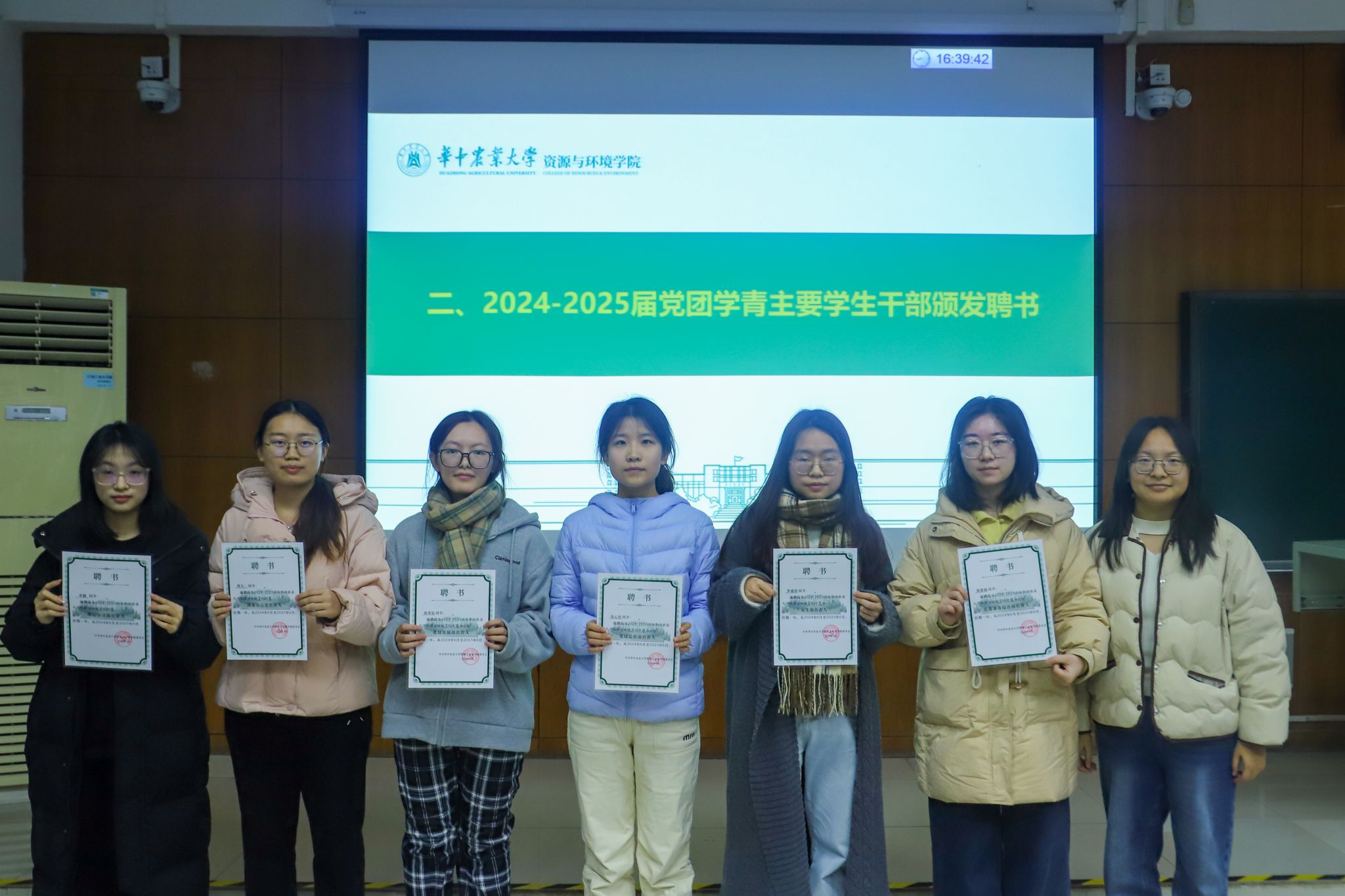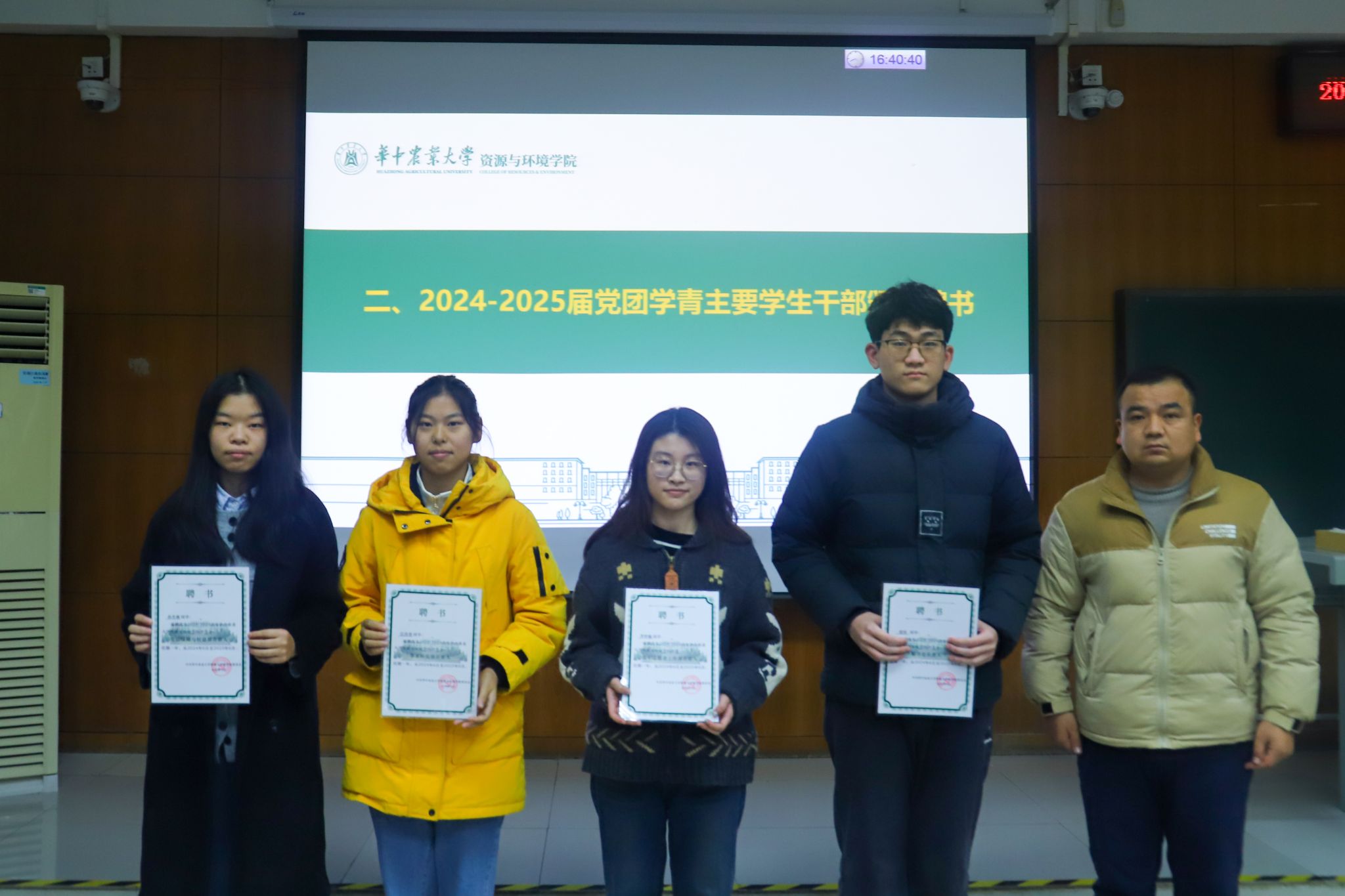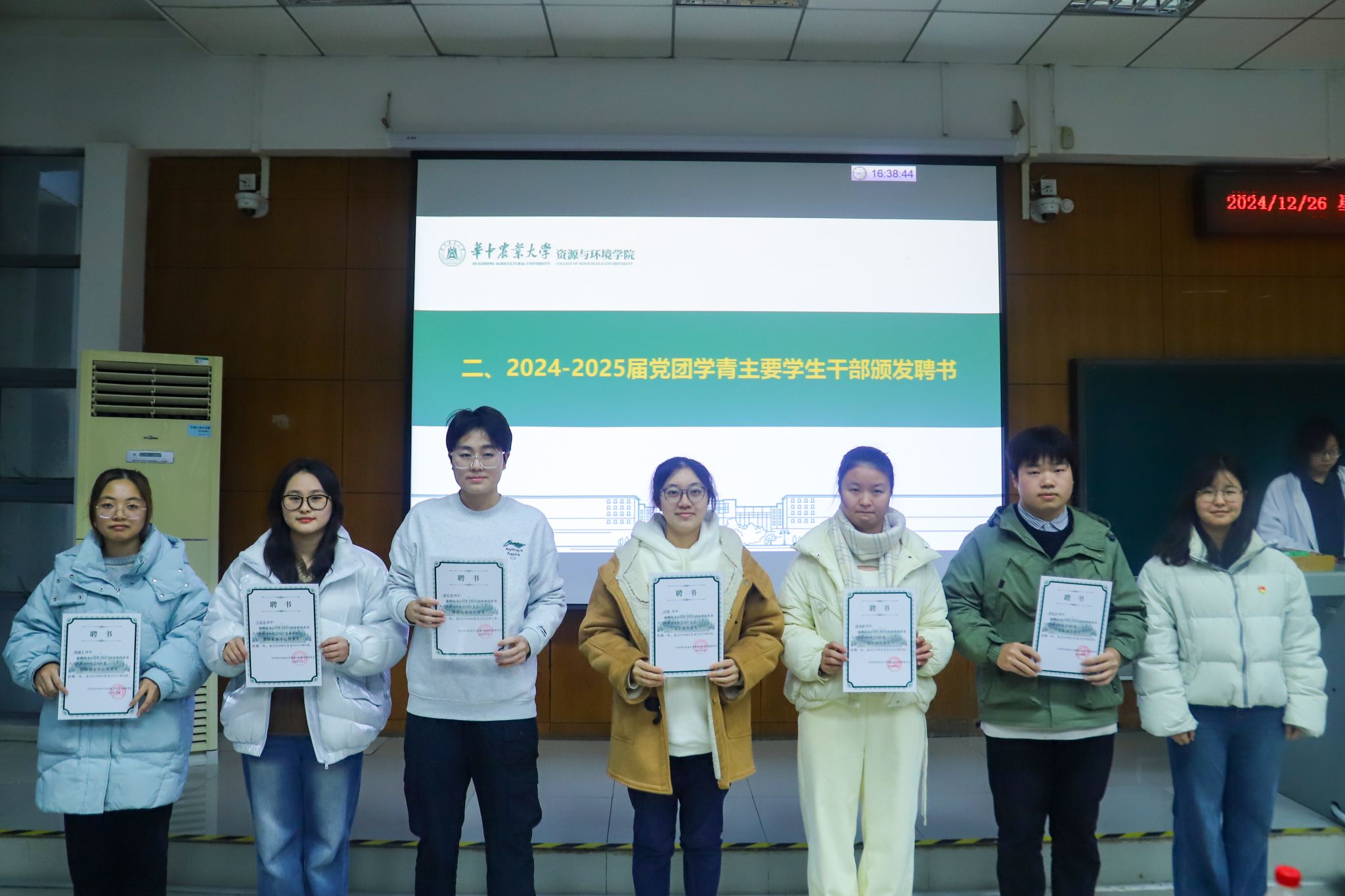 会议开始,江庆介绍了2024-2025届党团学青招新情况。自今年5月25日党团学青组织换届大会开始,公司共聘用员工党团学青主席团共7人,同时选拔出了22个优秀员工成为了公司下设的员工组织各部门的负责人。后续通过各项面试,共有98名同学成为了部门工作人员;从24级员工中选出了105名优秀的员工成为了各部门的志愿者。最终于11月底形成了共包含232员工的新一届2024—2025员工干部组织。并为2024-2025届党团学青主要员工干部颁发聘书。