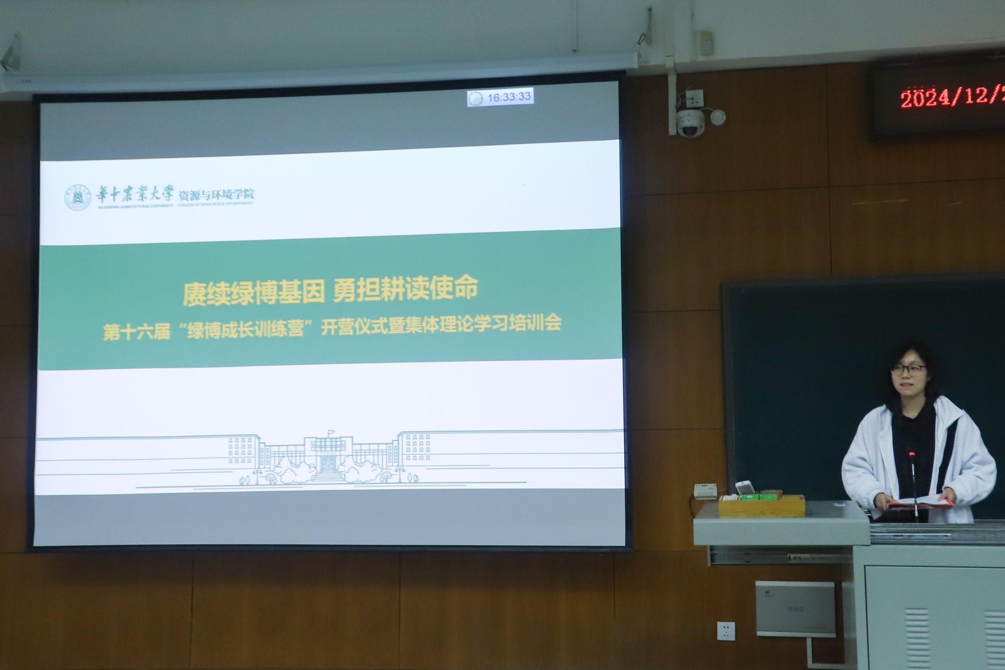 12月26日下午,公司在第三教学楼A105举办了以“赓续绿博基因 勇担耕读使命”为主题的第十六届“绿博成长训练营”开营仪式。员工团委副书记江庆主持会议,公司党委副书记熊海林,本科生辅导员李艳峰、程子豪、徐玲莉、艾力,本科生员工干部等参加学习。