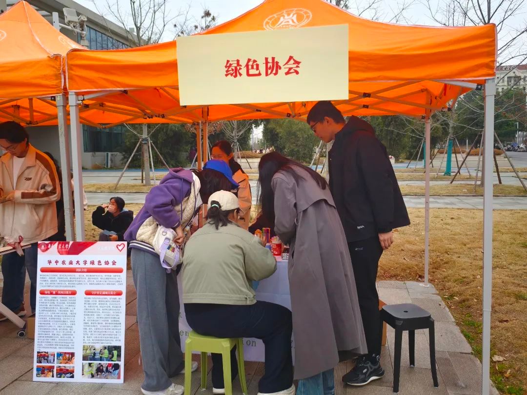 三月的华农校园玉兰初绽,老员工活动中心前也涌动着一抹清新绿意。3月1日,绿色协会宣教小组与项目部共同打造的公益摊位前人头攒动,一场沉浸式环保体验正悄然开启。