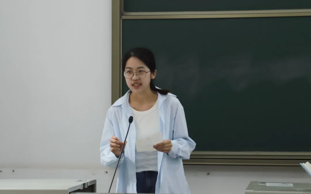 随后农资2102班孙靖结合自身经历,分享了自己成功推免中国农业大学的经历和方法。她从院校选择、推免流程、材料准备和打磨、面试经验四个方面展开分享,她强调材料需反复打磨,做足准备,要准备中英文且是不同时长的自我介绍的稿子,突出个人优势与科研潜力。同时要注重细节,细节决定成败。