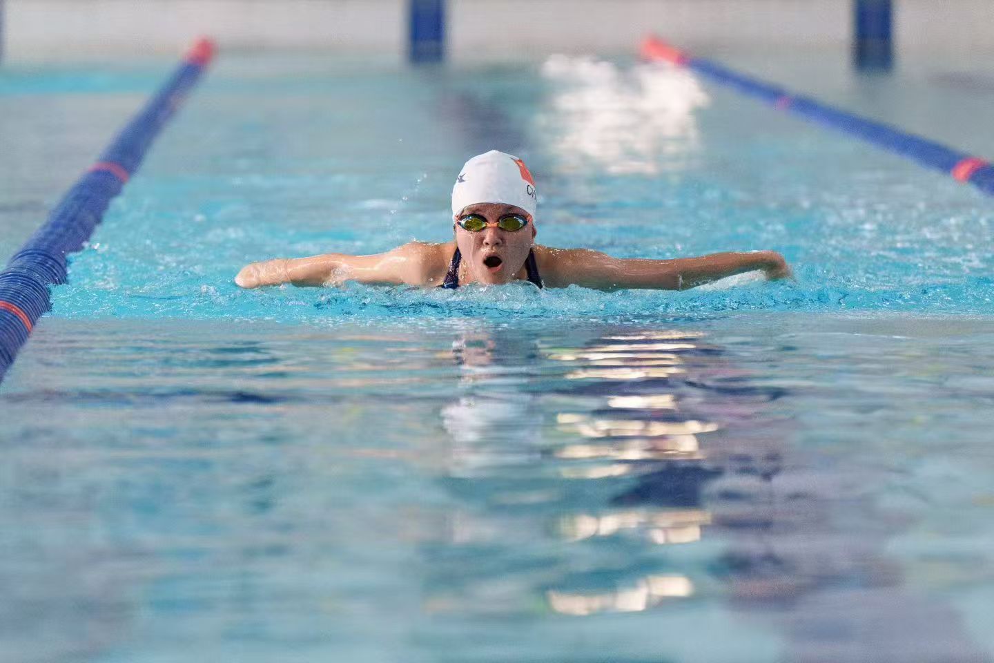 本届锦标赛共吸引了包括武汉大学、华中科技大学在内的20所高校、近300名运动员参与。在为期两天的激烈竞争中,毅力琦同学参加了多项高强度赛事的角逐。在女子甲组200米蛙泳和100米蝶泳两个高难度单项决赛中,毅力琦面对省内众多实力选手的挑战,始终保持稳健的竞技节奏。在200米蛙泳中,她凭借扎实的技术功底和出色的体能分配,一路劈波斩浪,最终摘得银牌;而在随后进行的100米蝶泳决赛中,她再次展现了强劲的爆发力,再夺一枚银牌。除个人单项实现突破外,毅力琦同学在集体荣誉面前同样当仁不让。在备受瞩目的男女甲组4×50米自由泳接力决赛中,她与队友默契配合、奋力搏击,最终助力公司接力队夺得该项目亚军。