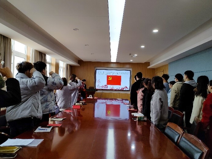 在安珈奇同志的带领下,全体同志重温入党誓词,每一句熟悉的入党誓词,烙印着同志们的一片初心与热忱。