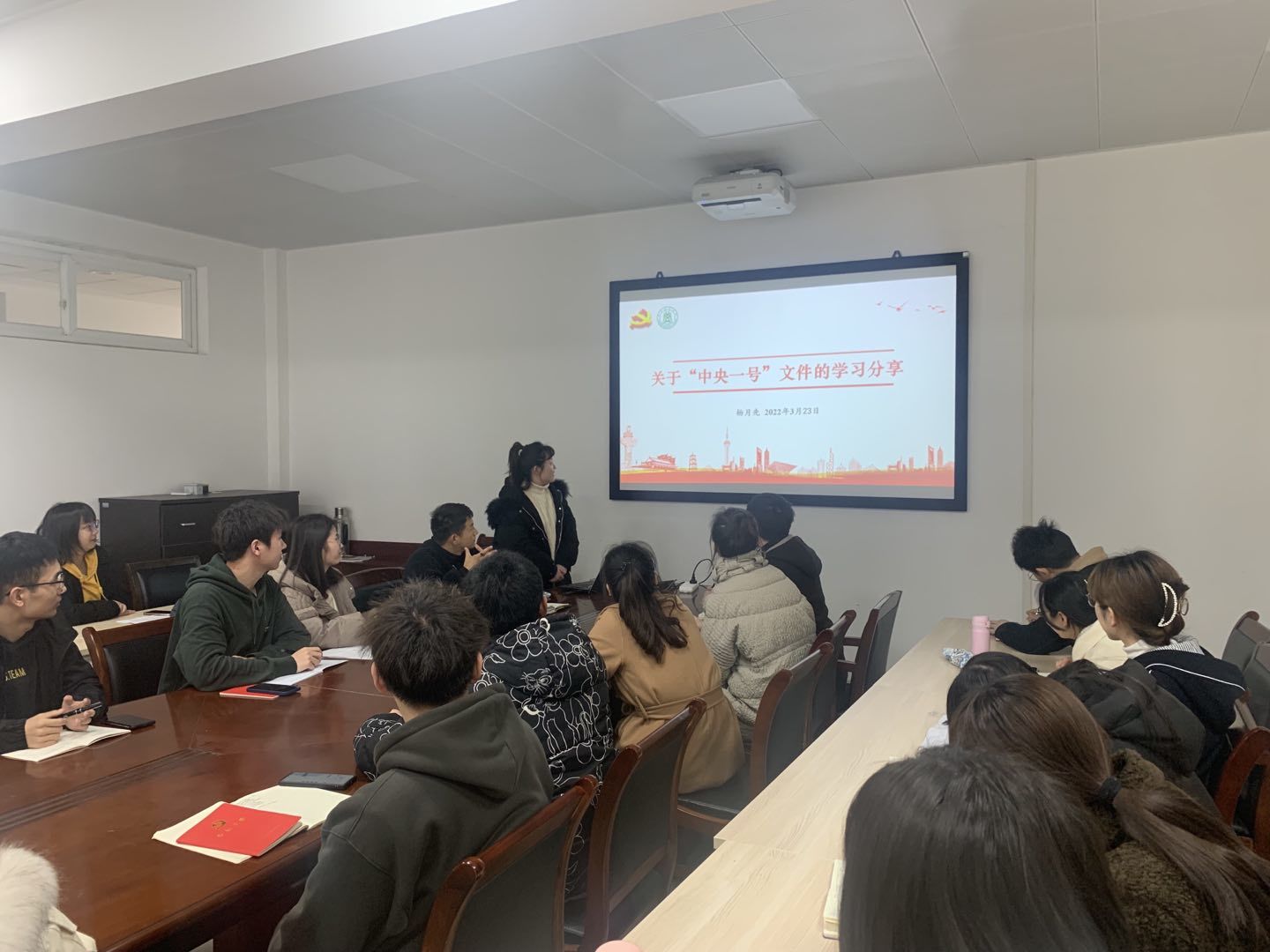 入党积极分子杨月先进行“中央一号”文件学习分享,她通过分享“中央一号”文件的历史前沿、主要内容和自己的心得体会,使大家更深入的学习了“中央一号”文件,了解到“三农”问题在现代化建设中重中之重的地位以及党中央解决“三农”问题的决心。