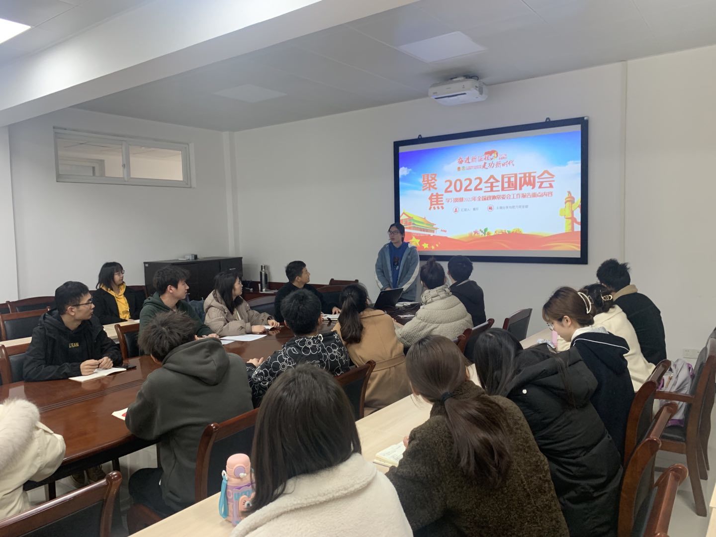 入党积极分子黄玎为大家分享了其“两会”精神的学习体会,大致分为2个部分:2021年——锚定开局“十四五”开启新征程履职尽责;2022年——围绕中国共产党二十大胜利召开凝心聚力、强化使命担当。
