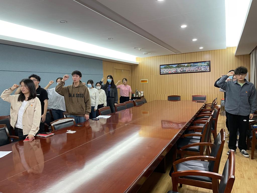 会议伊始,党支部书记吴刚带领全体党员重温入党誓词。