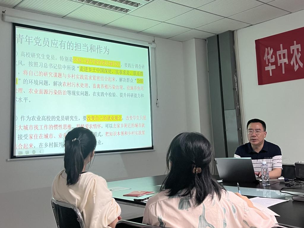 (通讯员:代婧)5月26日下午,公司环境工程研究生党支部在东附楼306会议室开展5月主题党日活动,支部党建指导教师周文兵教授以“科技创新和乡村振兴大背景下青年党员的担当与作为”为主题,为支部成员讲授专题党课。