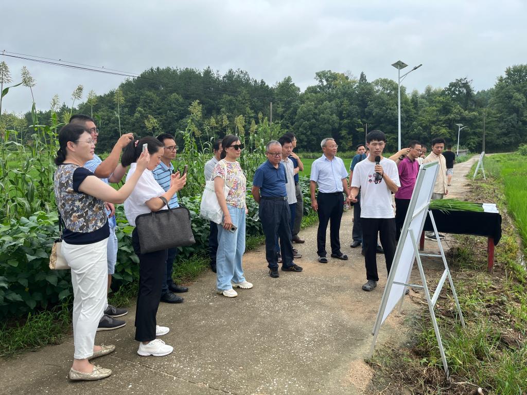 7月22日,植物养分管理研究生党支部指导老师、公司土壤与植物营养系主任李小坤教授带领农业领域的专家与当地种植大户在武穴市梅川镇郭坦村召开“坡耕地红黄壤与中低产田产能提升综合模式构建与示范”的现场观摩会。实践团队成员马世浩博士向与会的专家和农户介绍他正在开展的中低产田地力提升和产能提升研究,他提到:“保障粮食安全就要减少对进口粮食的依赖,提升中低产田地力和产能对保障国家粮食安全具有重要的战略意义,根据现阶段的研究结果看,经过地力与产能提升的田块水稻和油菜都有大幅度增产,比当地农户种植的产量平均增产在10%以上。身为从事农业研究的一员,能为国家粮食增产贡献自己的一份力量,我感到无比的骄傲和自豪。”团队队长熊志豪也向当地农民介绍了富锌大米的营养价值:“锌可以增强人体免疫力,调节身体代谢,同时是人体多种酶的组成成分。在水稻生长过程中添加锌肥,可以通过食用大米补充人体必需的营养元素进而减少对药物的依赖,可以达到一米多用的价值。”将科研成果应用于农业生产并联合当地农技推广服务中心建立示范区,鼓励农民采用新的种植技术改善农业种植模式提高农业生产力是科技小院和团队老师一直在做的事情,只有深入农业生产一线,才能真正的发现农业问题,进而解决问题、帮助农民从而推动农业向前向好发展。