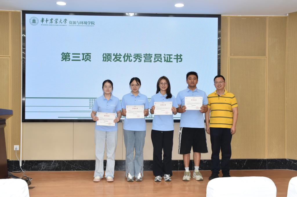 闭营仪式上,许琳老师宣读优秀营员名单,蔡鹏老师为优秀营员代表颁发荣誉证书并合影留念。山东农业大学的李泽康同学作为优秀营员代表发言,他表示,“短短几天切身感受到了华农‘育人为本,崇尚学术’的办学理念和‘勤读力耕,立己达人’的文化传承,期待我们的梦想能在华农这片神奇的土地中,生根发芽,结出饱满的果实。”