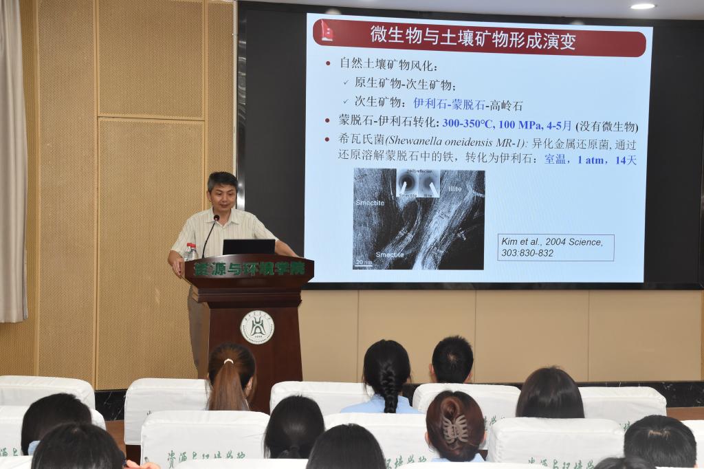学术报告环节,黄巧云、刘玉荣等10位专家学者为营员介绍学术前沿、科研方法、团队研究成果、社会服务等方面内容,涵盖土壤微生物、数据驱动土壤污染过程的解析、作物绿色增产增效技术集成创新、生物膜法灰水处理与资源化、遥感技术服务农业资源、面源污染与生态修复、水土流失过程与生态调控等十个主题。黄巧云教授围绕“何为健康土壤?何为绿色修复?”问题讲述团队在土壤微生物领域的研究进展,并鼓励同学们潜心科研,以实际行动践行“博学、慎思、笃行”的人生准则。刘玉荣教授介绍了数据驱动在土壤甲基汞污染领域的应用,号召同学们做改善动物、植物、人类和整个生态系统健康的研究。丁广大教授从分子视角看植物营养,介绍油菜硼高效利用、植物地上磷分配、植物缺素分子诊断等分子机制应用案例,引发同学们的学术兴趣。